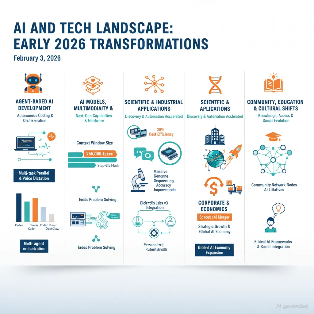 The current AI and tech landscape is witnessing rapid and transformative developments across various domains, from agentic coding platforms and autonomous AI assistants to scientific discovery and industry-specific automation.