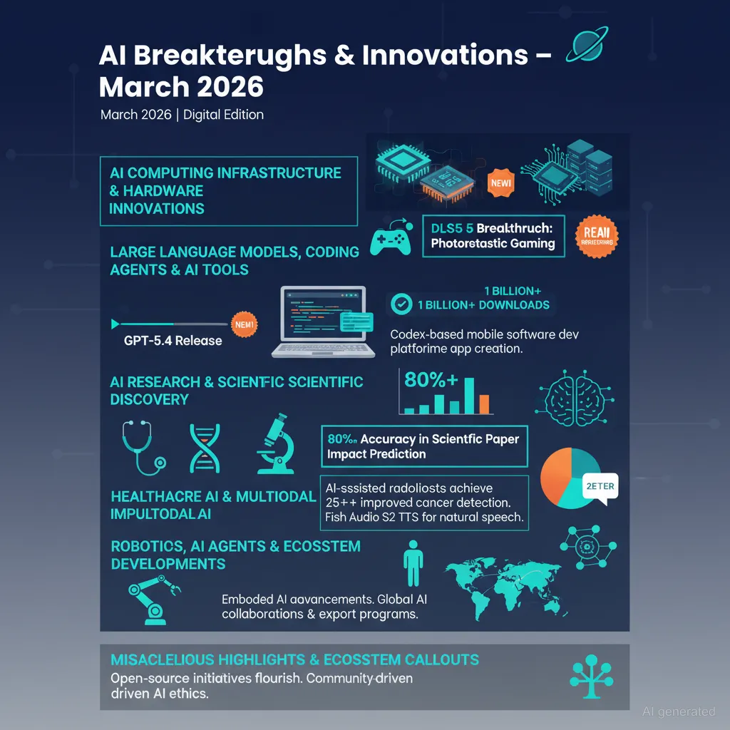 OpenAI released GPT-5.4 (including mini and nano variants), optimized for coding, multimodal understanding, and subagents, achieving record usage volumes and improved speed, and significantly enhancing coding experiences like those with Codex. Claude Code emerges as a leading coding AI agent, supporting vision AI and enabling accelerated machine learning research with plugins for experiment tracking, GPU monitoring, and diagram generation. OpenClaw and NemoClaw represent open-source projects striving to bring powerful AI agents to local machines, emphasizing privacy, speed, and cost-effectiveness. Frameworks like LangChain have crossed one billion downloads, indicating broad adoption.